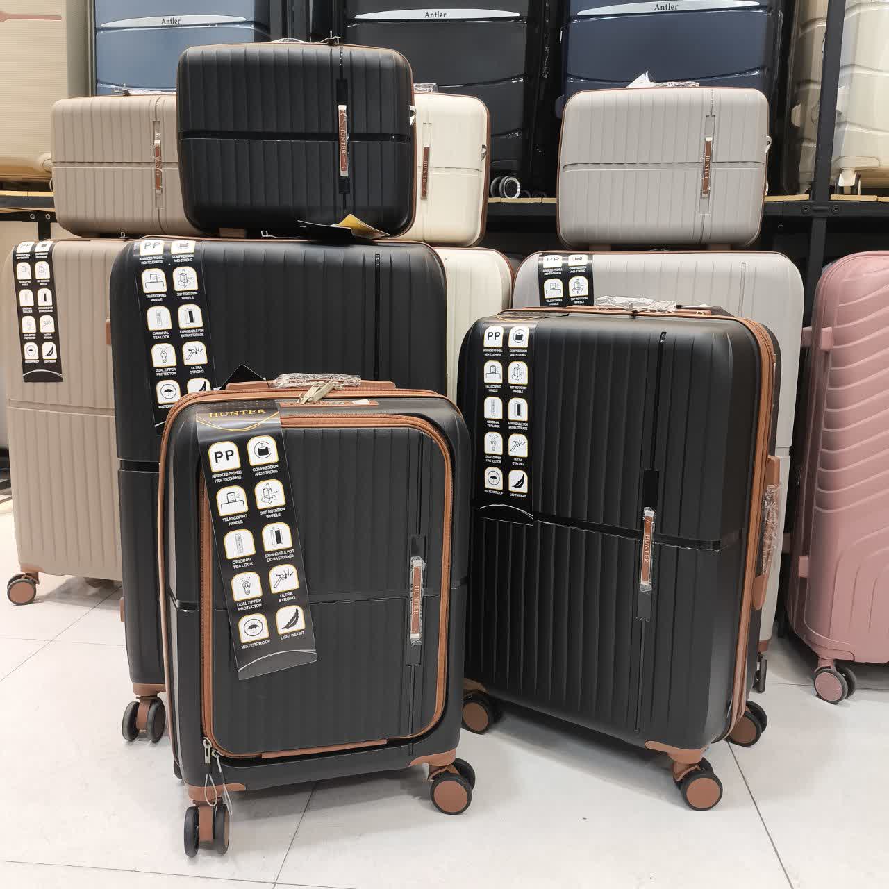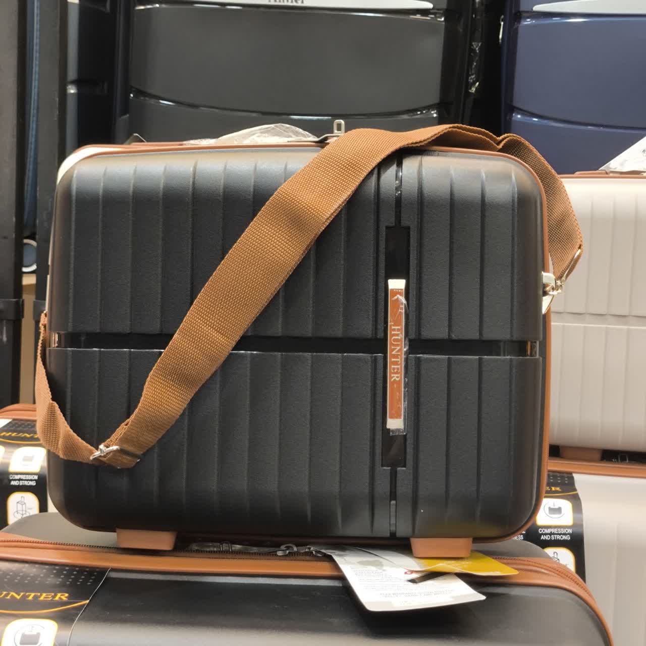 چمدان هانتر رنگ مشکی با حاشیه شکلاتی