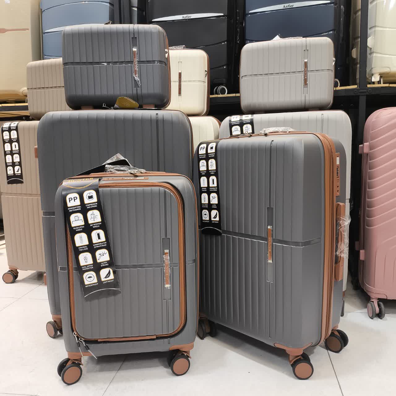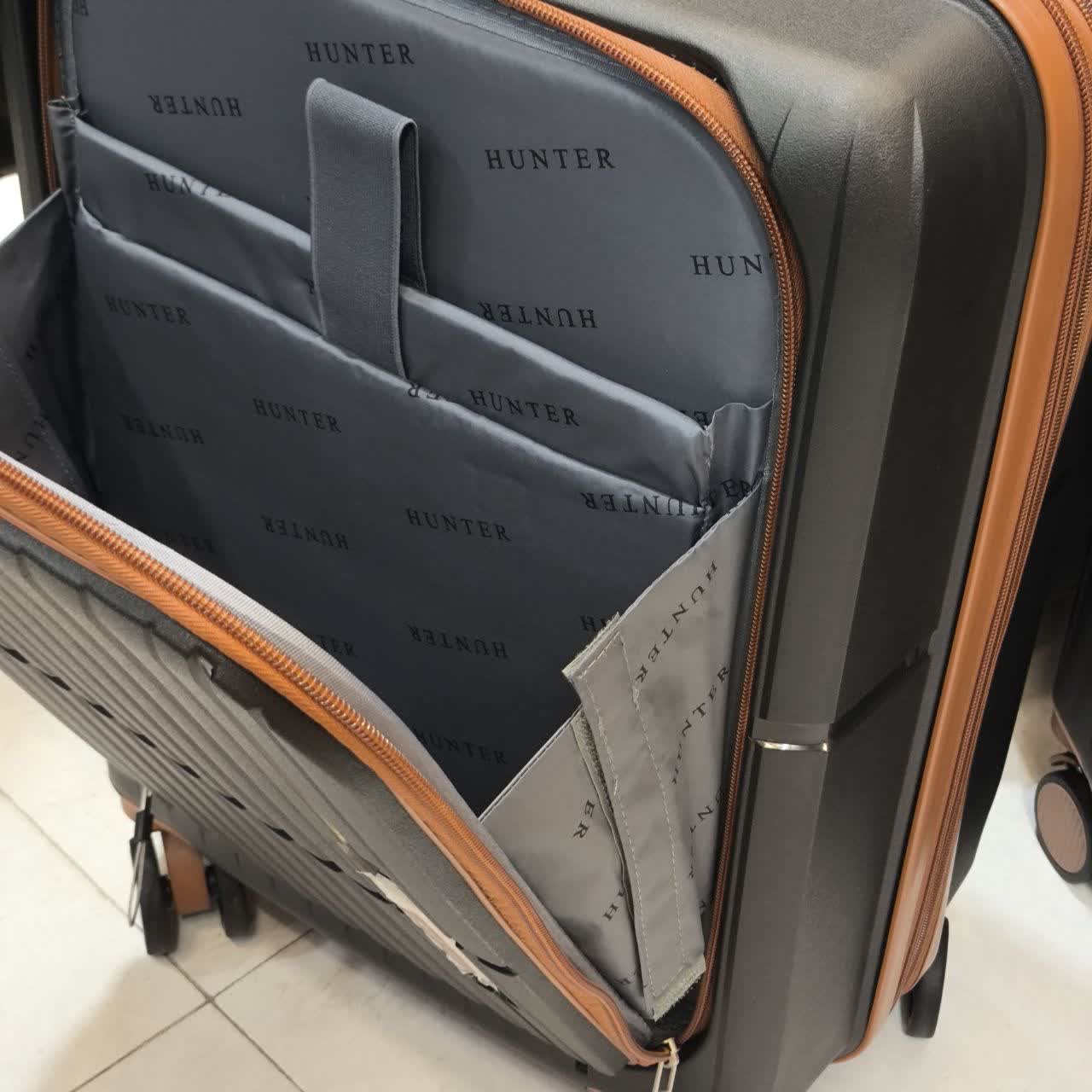 چمدان هانتر رنگ نوک مدادی با حاشیه شکلاتی