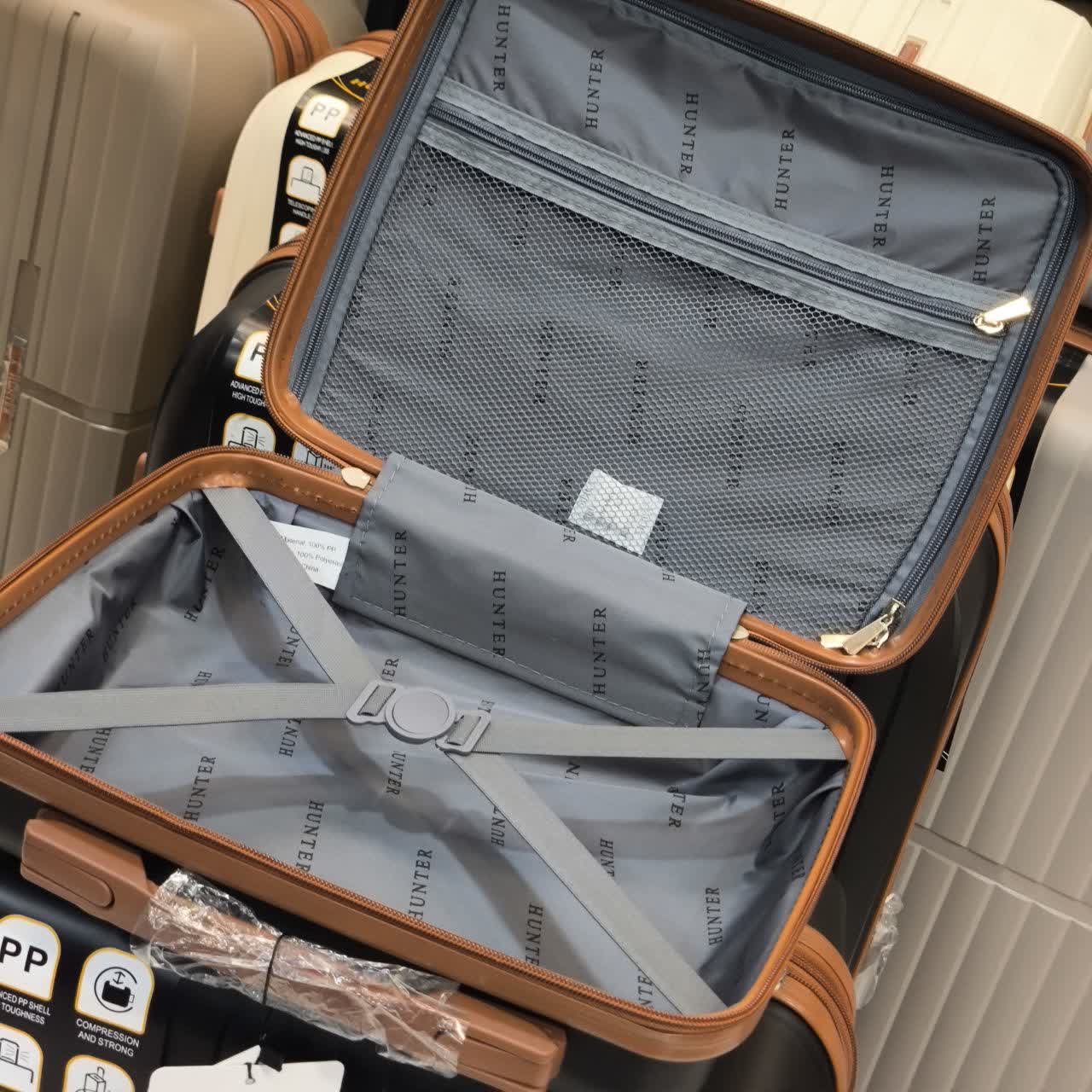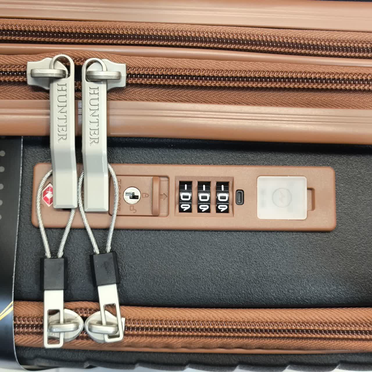چمدان هانتر رنگ نسکافه ای با حاشیه شکلاتی